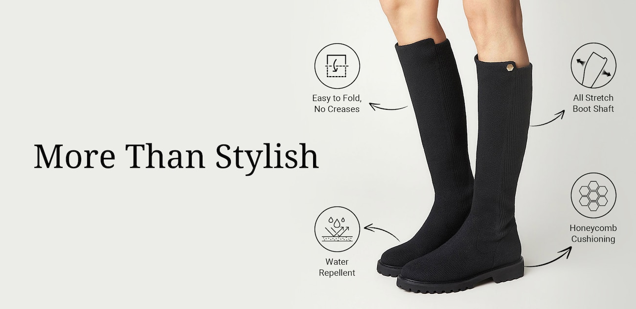Round-Toe Stretchy Wool Knee-High Boots (Filipa)