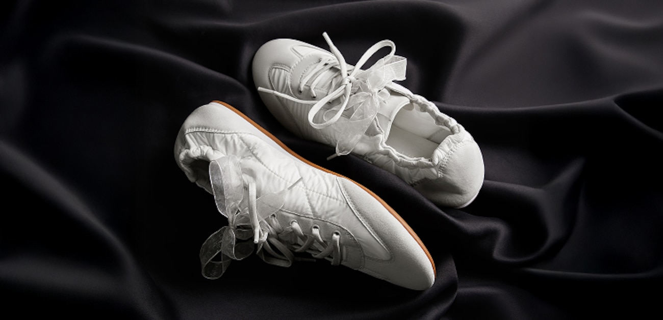 Square-Toe Lace-Up Satin Sneakerina (Cristina)