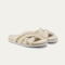 Stylish wide criss-cross straps Lightweight EVA traction outsole Countoured dual- density footbed Machine washable Upper made from recycled faux fur Easy to slip-on