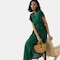 Linen Wrap Dress-Peacock Green