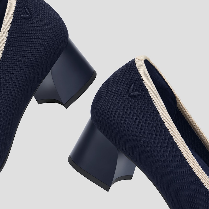 Almond-toe block heel 4.5cm/ 1.77” heel Natural Artemisia Argy + PU foam insole, with heel rebound, arch, and forefoot support Heel Patch for added comfort Rubber Outsole Packaged with 100% recycled shoe fillers and recyclable boxes Note: 1. The insole contains natural Artemisia Argyi herbal. People with allergies, please consult a medical professional before wearing. 2. We use very rich eco-friendly dyes to create our unique and vibrant Navy color. We recommend pairing these shoes with dark or matching colored socks when wearing them to avoid the possibility of color transfer.