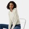The Garnet Wool Sweater is designed with a modern relaxed fit, a bold polo neckline, and string detailing. This stylish women’s sweater features a slightly cropped silhouette, making it the perfect simple yet elevated style to pair with anything in your collection.